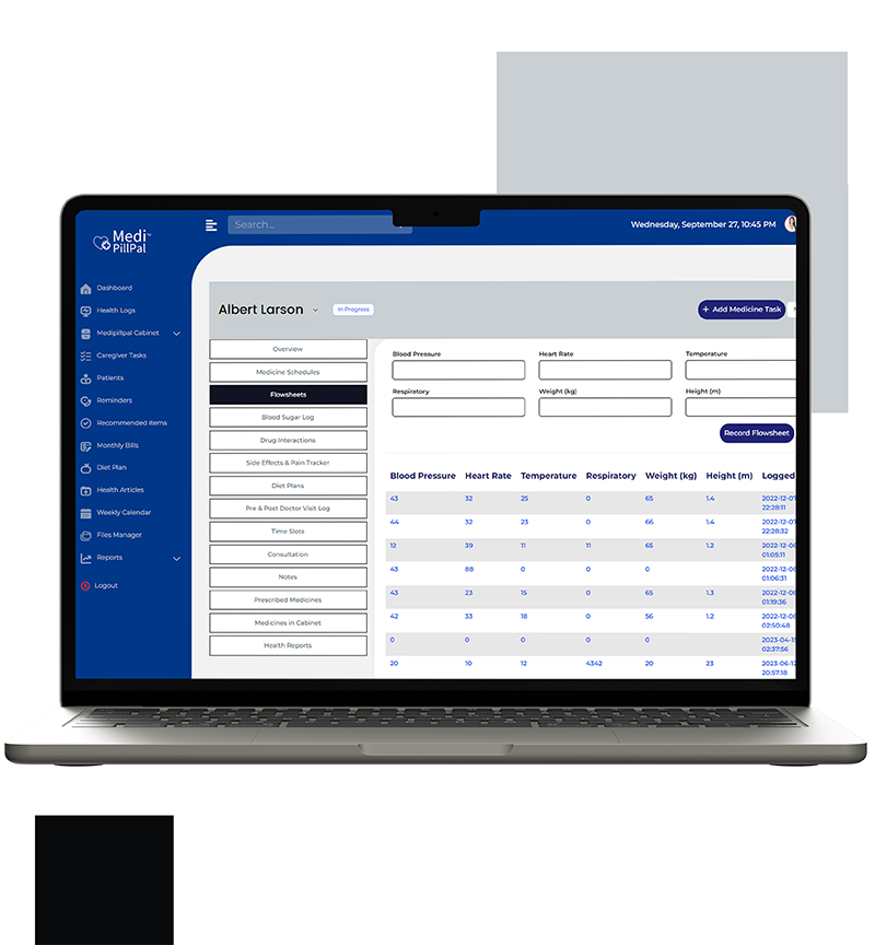 Internet-based access improves the ability to access such data remotely and helps you to be aware of where the medicine of this patient is located in Medi PillPal® cabinet, revenue streams, patient records, and other critical metrics in real-time at your fingertips. It allows electronic sharing of patient records with other providers and families and manages the overall health of patients.