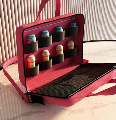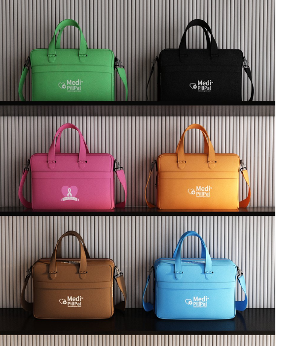 The crossbody locking travel bag is an accessory that is a claim in the Medi PillPal® Patent and can be offered for purchase. These bags are built with quality from stitch & quilt and are the perfect travel bags to store all your medication so you can take them wherever you go.